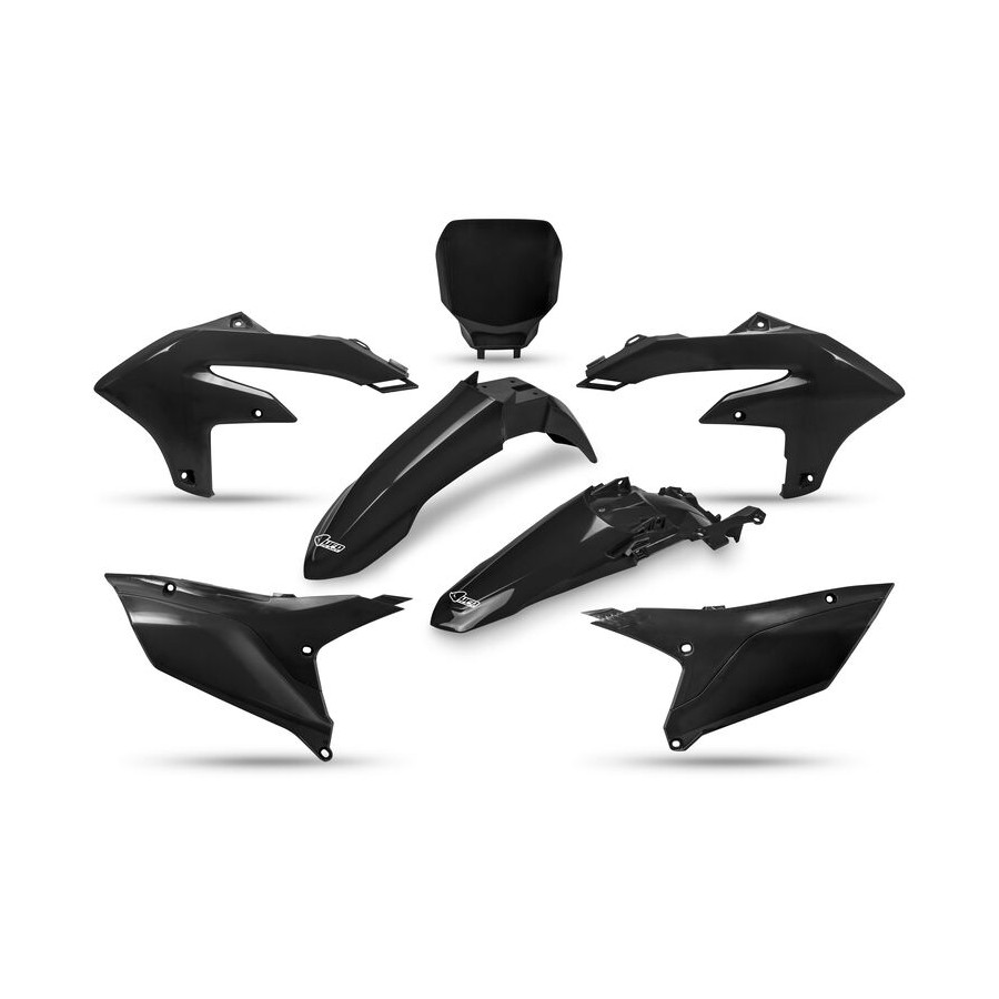 Les plastiques UFO sont mondialement réputés pour leur qualité de fabrication et leur résistance aux sollicitations liées à la pratique du TT. Ils reprennent les cotes de la première monte et se montent facilement sur les points de fixations existants.